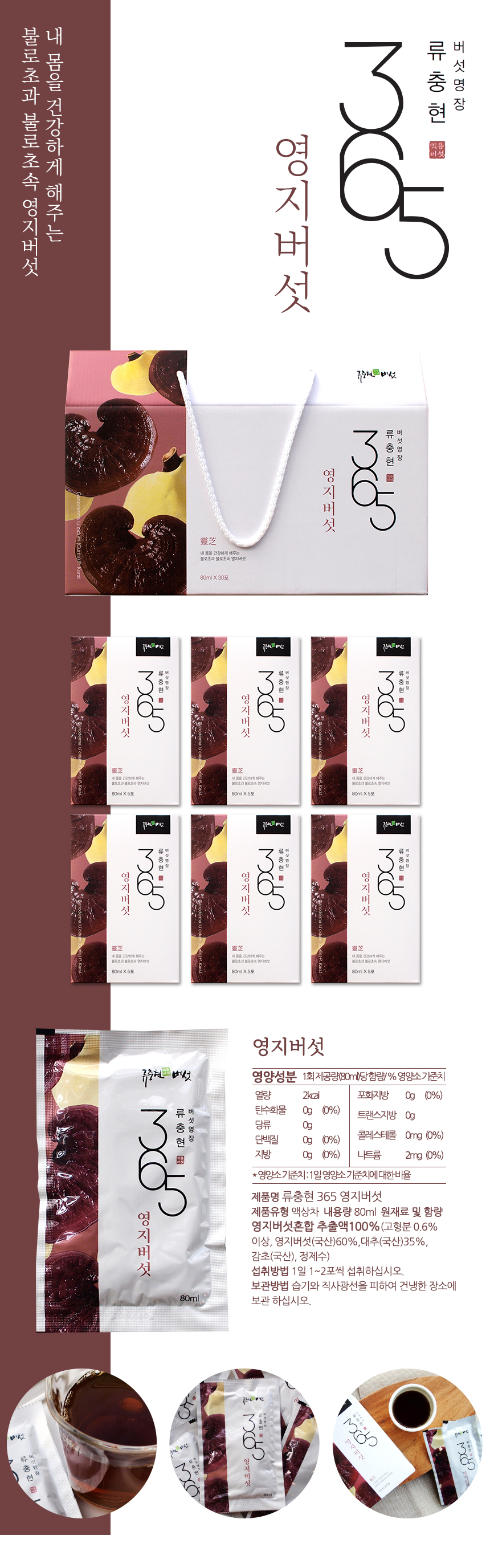 • 류충현버섯명장 영지버섯 진액 선물세트 80ml×30팩