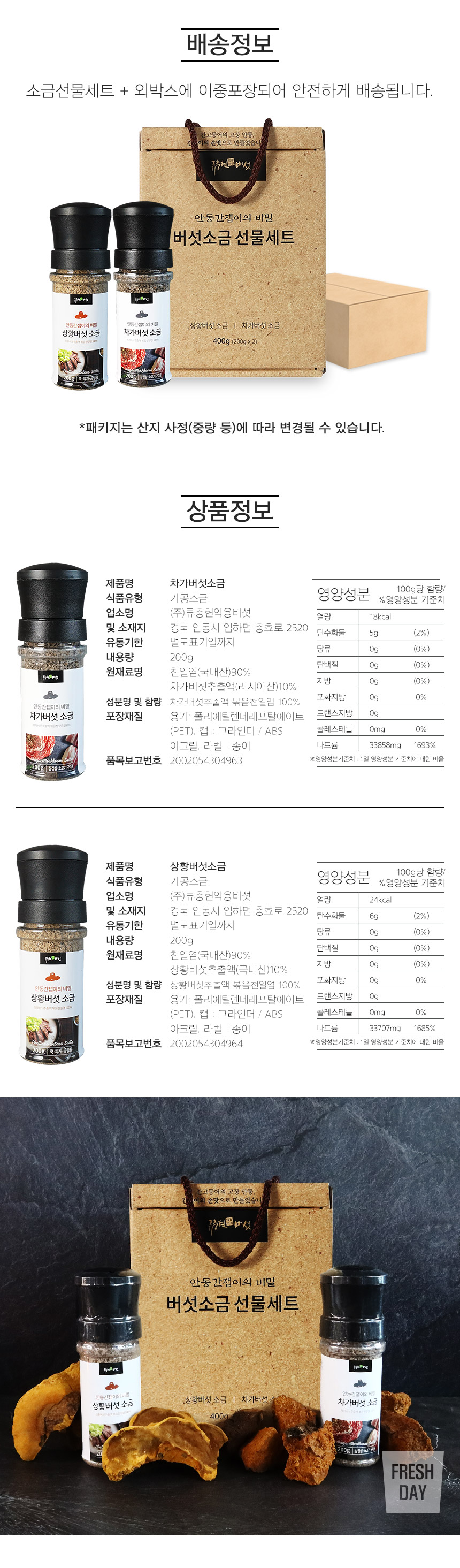 • 류충현버섯명장 약용버섯 소금선물세트 2입