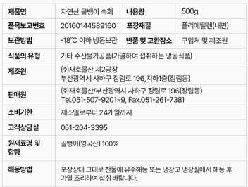 • [재호식품] 자연산 골뱅이 숙회 500g (골뱅이:영국산)