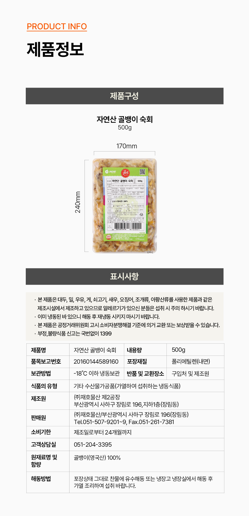 [재호식품] 자연산 골뱅이 숙회 500g (골뱅이:영국산)