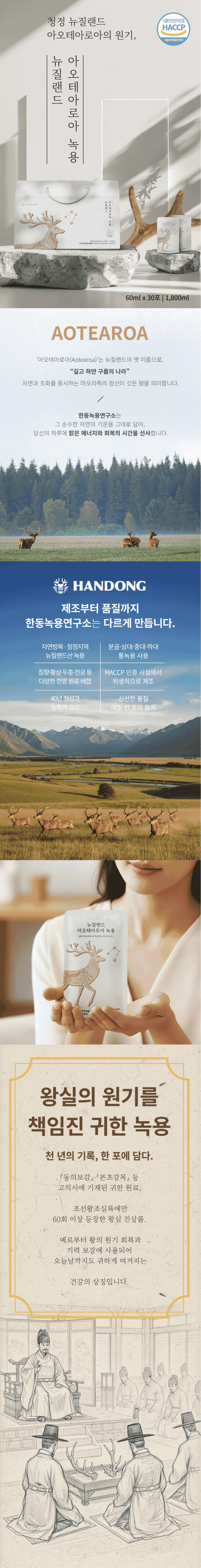 뉴질랜드 아오테아로아 녹용 진액 60ml x 30포 자연방목 보양 건강즙 기력 면역 선물