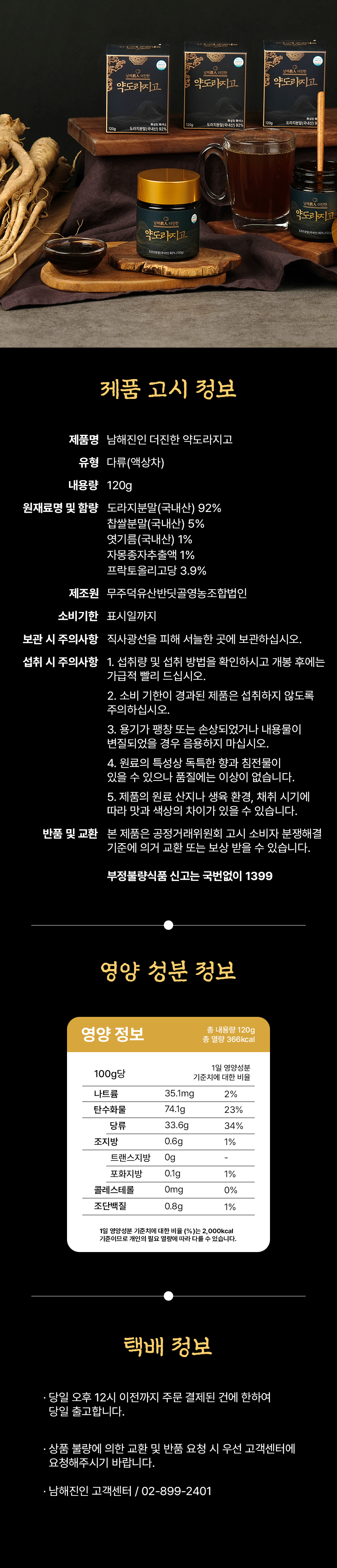 총내용량 120g 총열량 366kcal 나트륨 2%, 탄수화물 23%, 당류 34%, 조지방1%, 트랜스지방o, 포화지방1%, 콜레스테롤 0%, 조단백질1%
