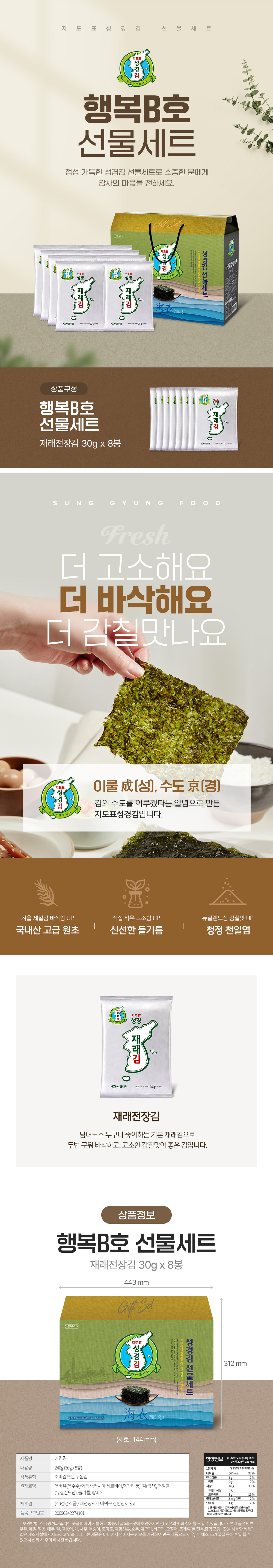 지도표 성경김 전장김 선물세트(재래 전장김 30g 8봉)