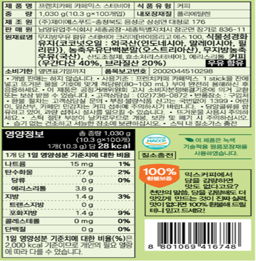 [입점특가] 프렌치카페 카페믹스 스테비아(100T)