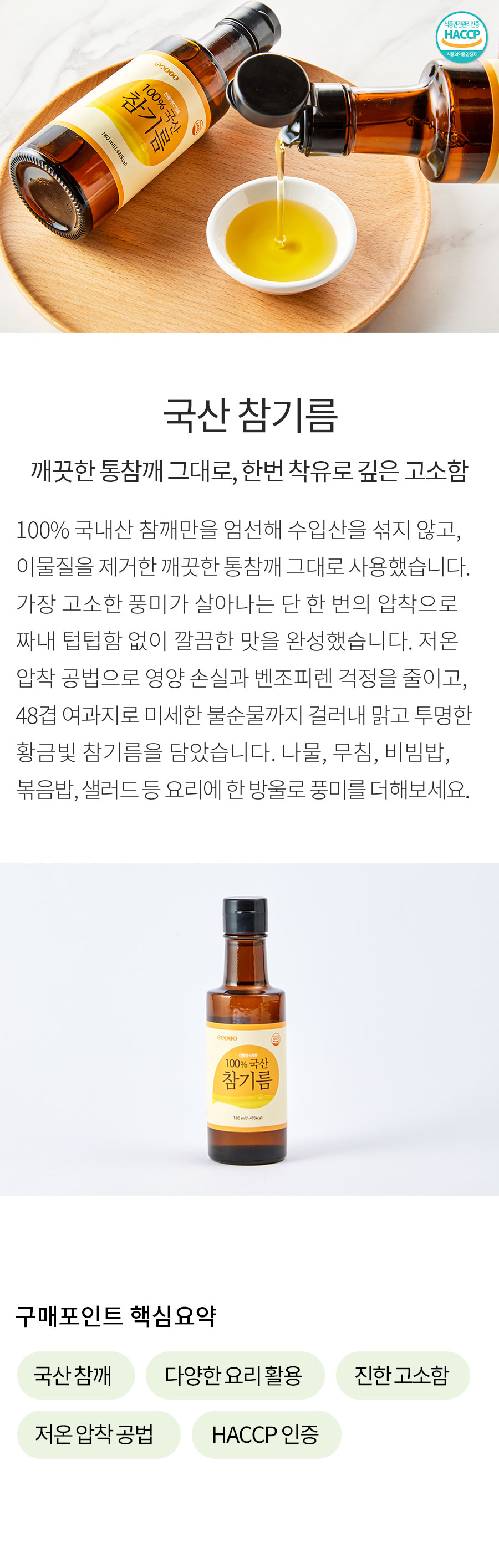 깨 본연의 풍미, 통참깨사용, 한번 착유로 깊은 고소함
