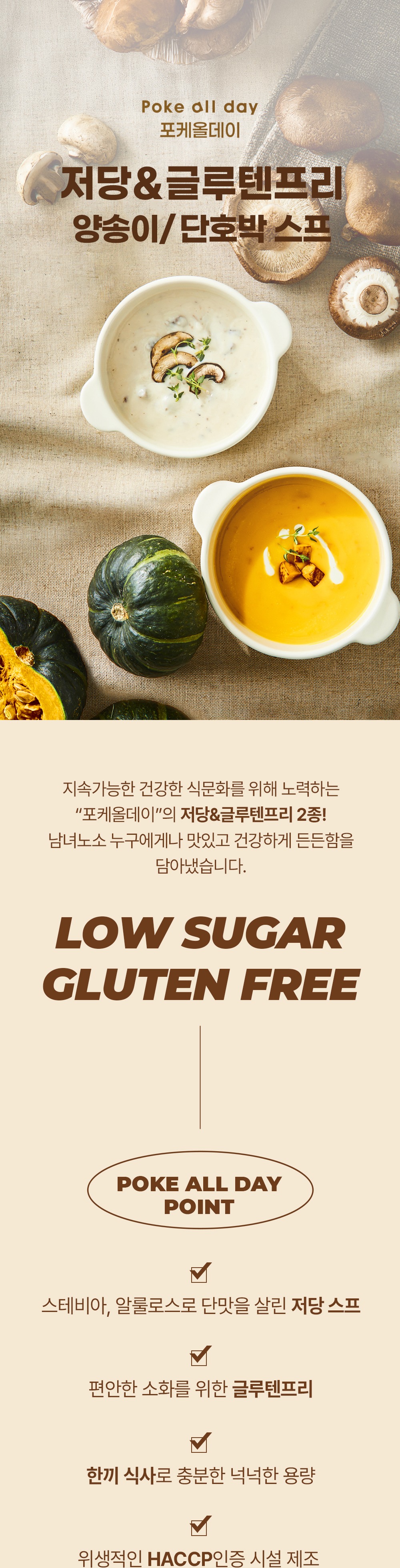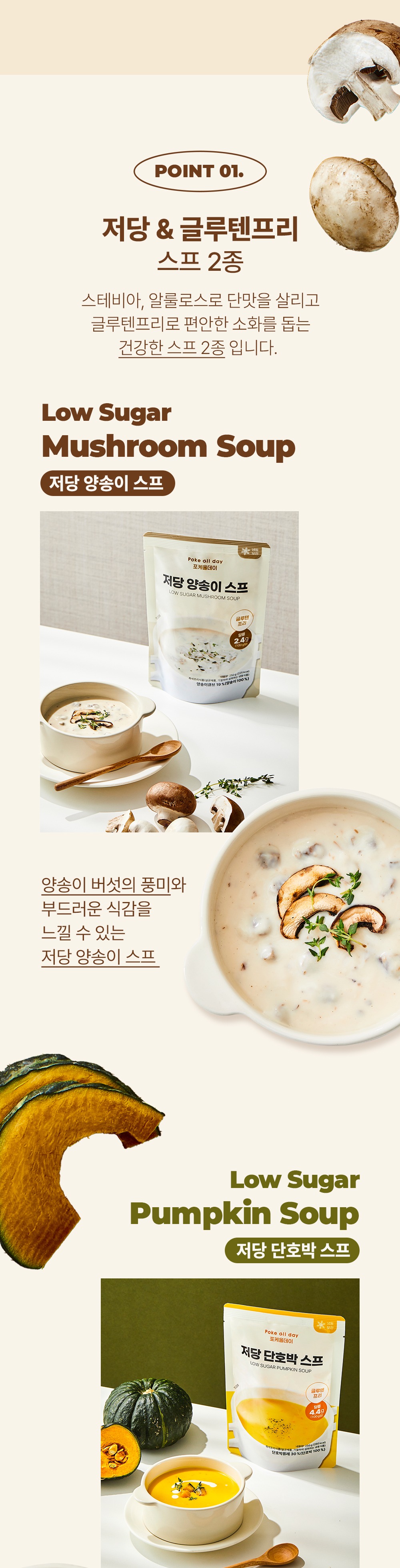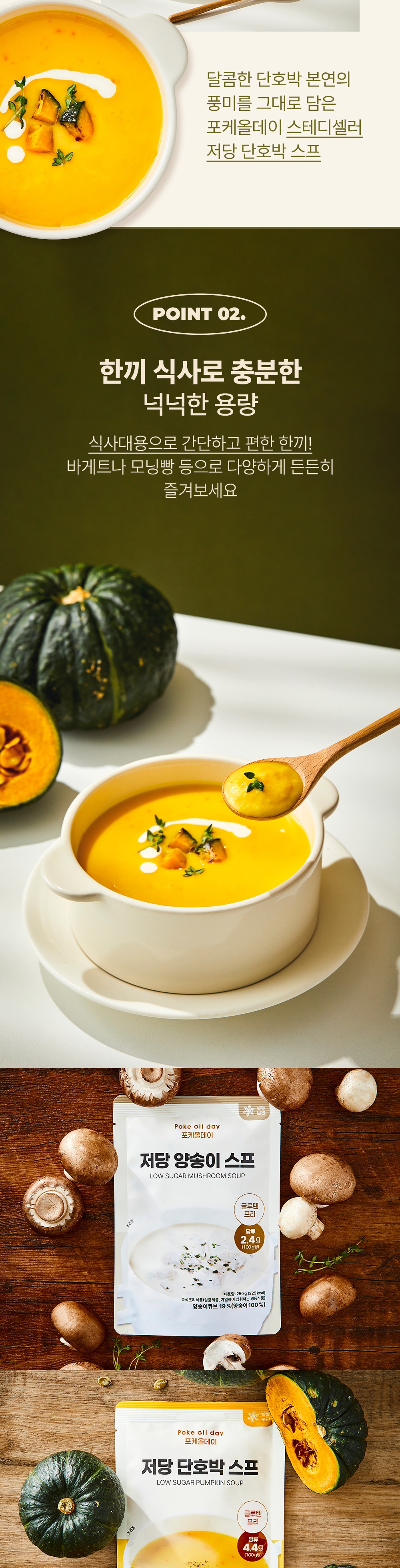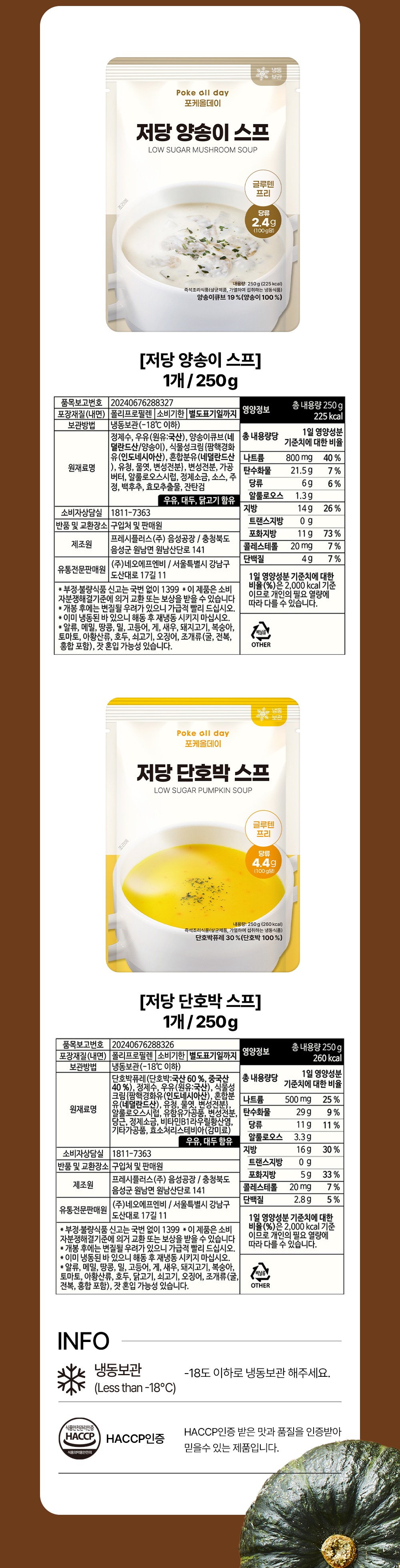 • [포케올데이] 저당 단호박 스프 / 저당 양송이 스프 250g 택 1
