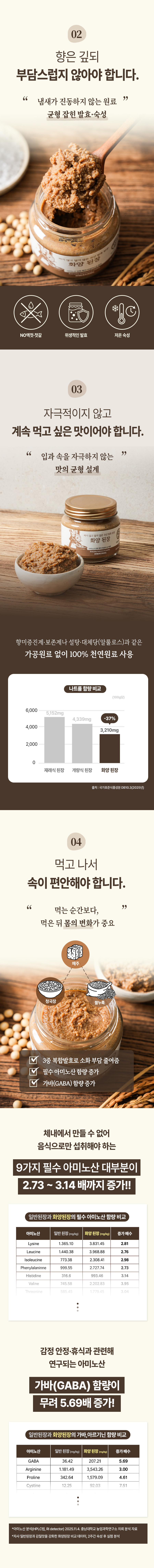 짜지 않고 달지 않으며 과하지 않는 된장 향과 자극 없이 모두가 즐기는 속이 편안한 국산 화양 된장