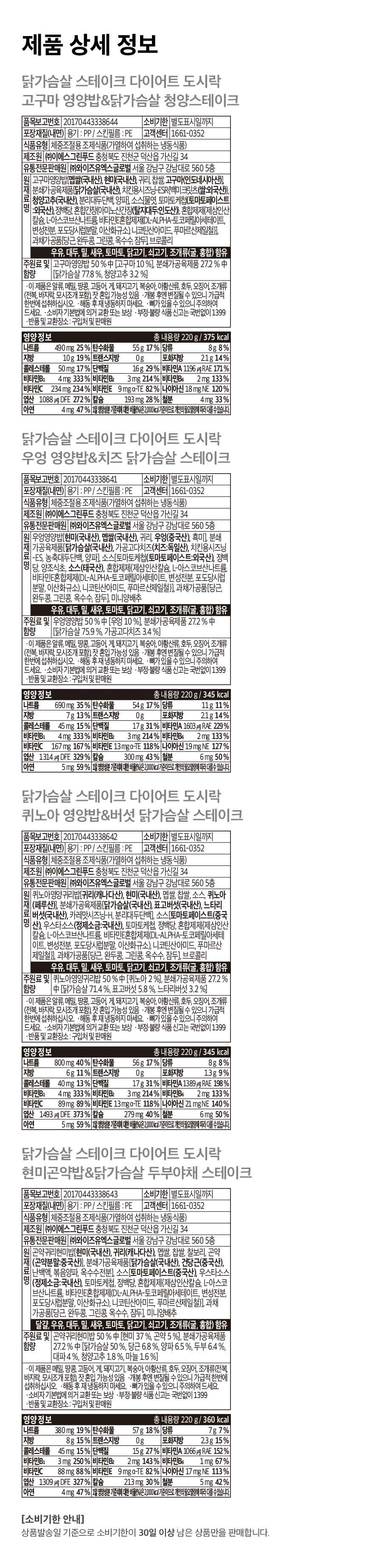 [체중조절/식단관리] 닭가슴살 스테이크 다이어트 도시락 4종 (220g×8팩)