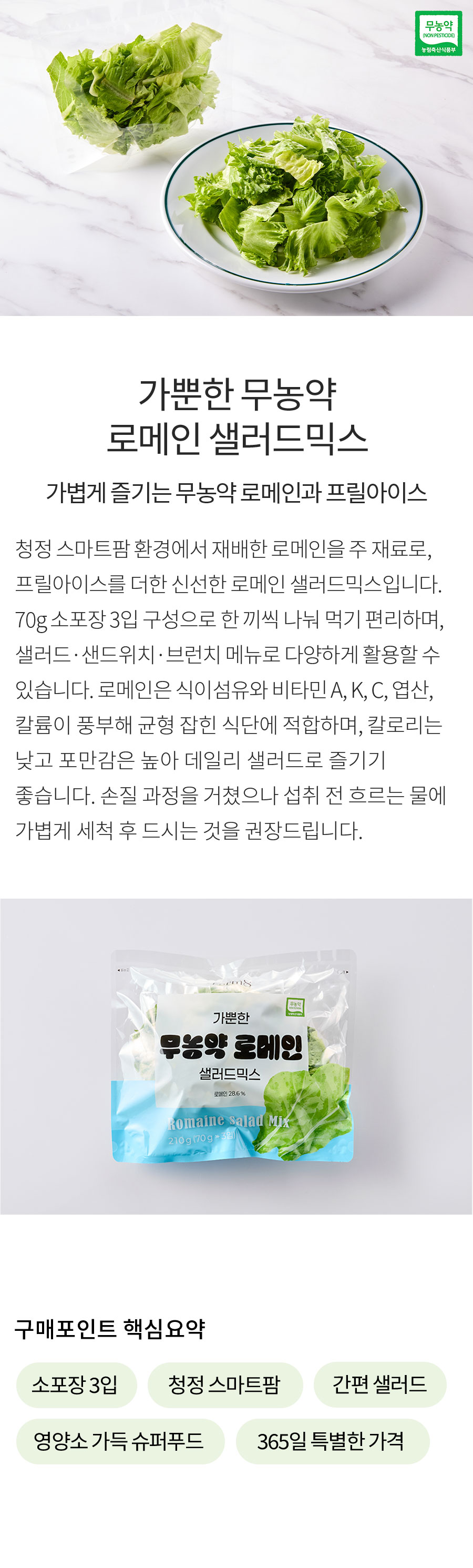 가뿐한 무농약 로메인 샐러드믹스 210g(70g x 3입)