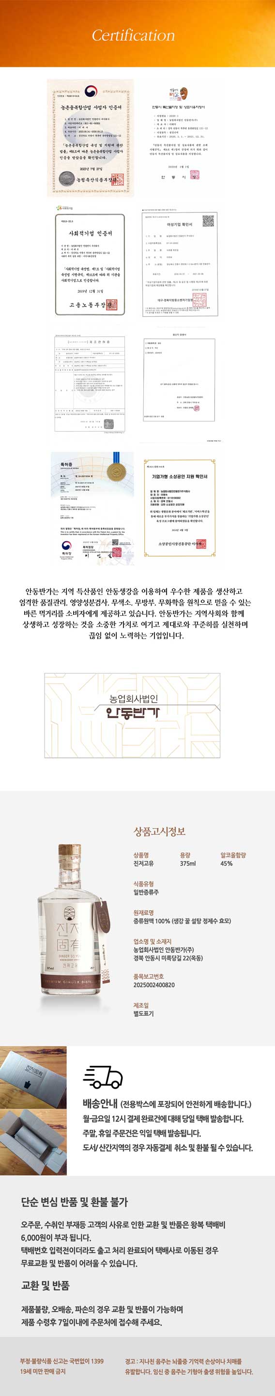 • 진저고유45 안동 순수 생강 발효 증류주 술 전통주 진저스피릿 선물 45도 375ml 1병