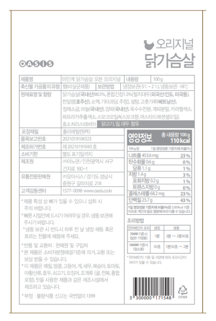 간편하게 꺼내먹는 국내산 오븐 닭가슴살