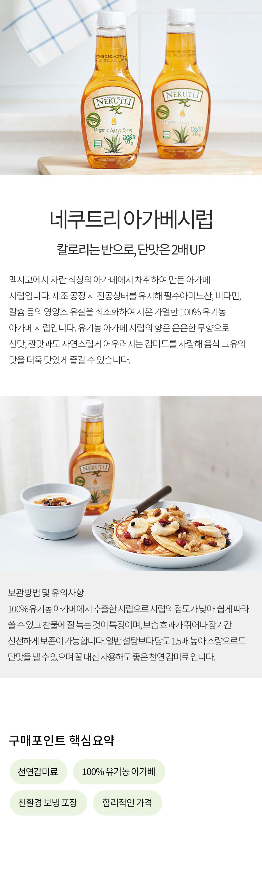 네쿠틀리 유기농 아가베 시럽 (335ml) 수량빼기 수량추가 9,800 원 총 수량 1 개 9,800 원 구매옵션 닫기 찜하기 추가 찜하기 삭제 구매후기 774 상품상세 정기구독 장바구니 정기구독 장바구니 구매하기 정기배송 장바구니
