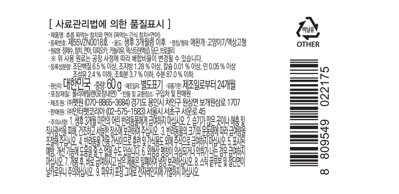 참치 베이스로 영양을 듬뿍 담은 국산 츄르형 간식
