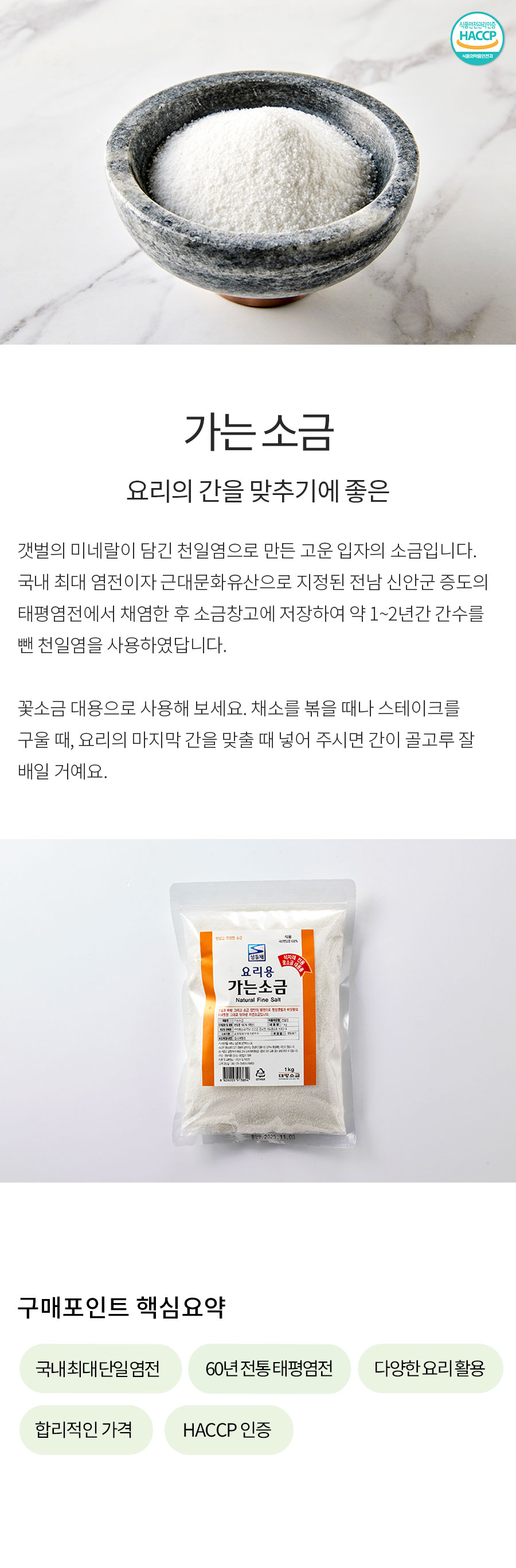요리용 가는 소금 (1kg) 수량빼기 수량추가 1% 6,640 원 정기배송 1% 할인가 6,574원 총 수량 1 개 1% 6,640 원 구매옵션 닫기 찜하기 추가 찜하기 삭제 후기 922 상품상세 정기구독 장바구니 정기구독 장바구니 구매하기 정기배송 장바구니