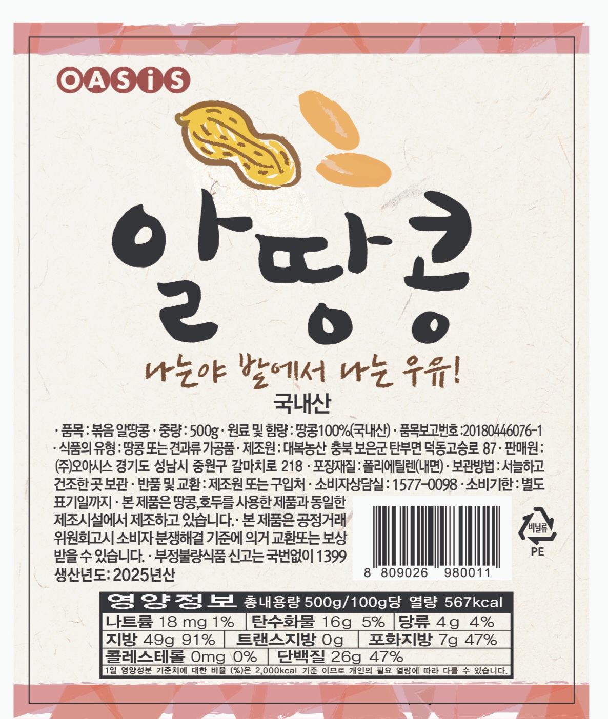 [25년산,특가] 국내산 볶음 알땅콩 (500g)