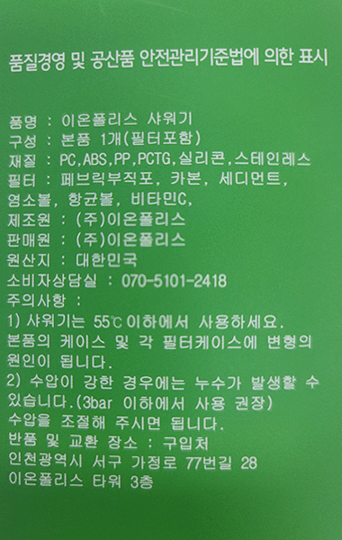 이온폴리스 수온감응 3색 LED 7단계 필터 샤워기