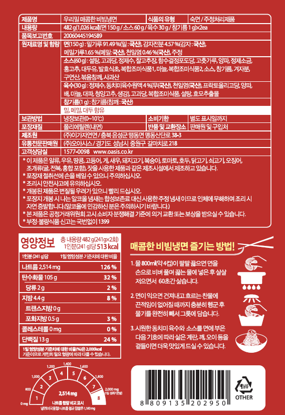 우리밀 비빔냉면 (482g, 2인분)