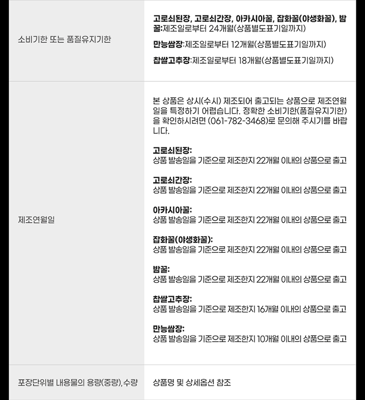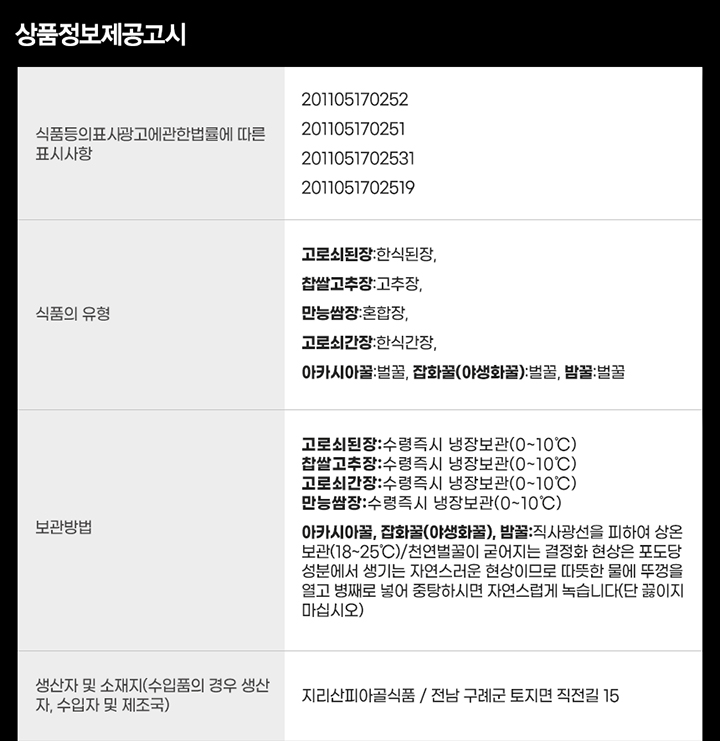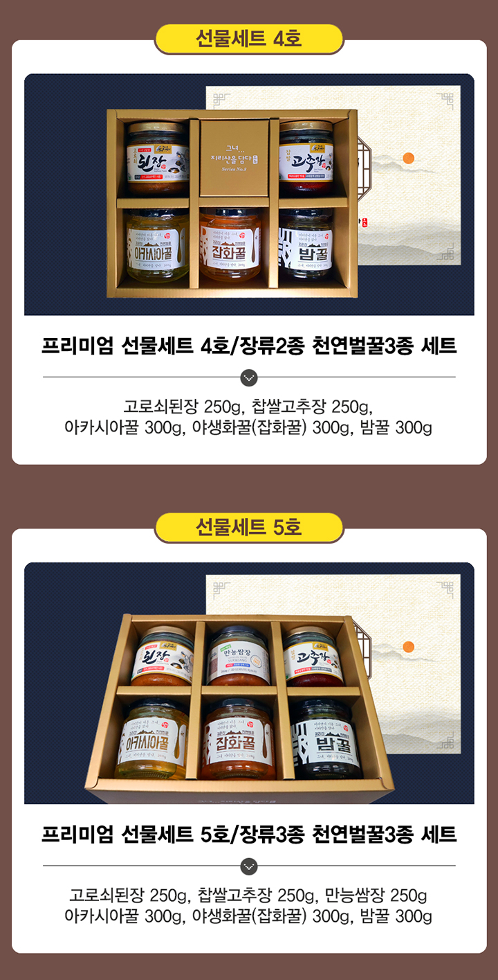 • 피아골미선씨 프리미엄 선물세트 5호/장류3종 천연벌꿀3종 세트