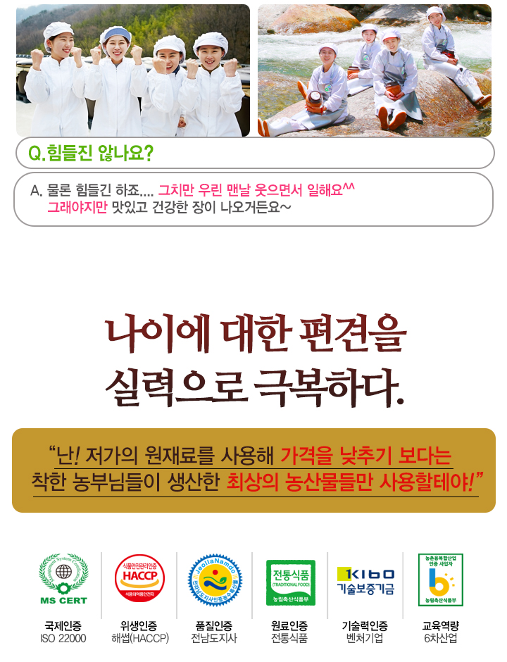 청정 피아골에서 온 국산 100%! 원재료만을 사용한 장류 선물세트