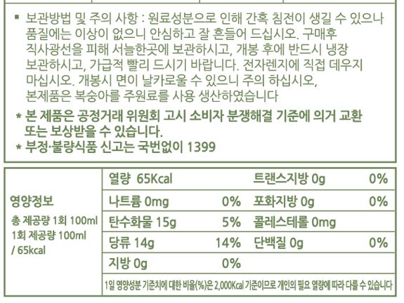 열량 65kcal (1회 제공량 100ml )