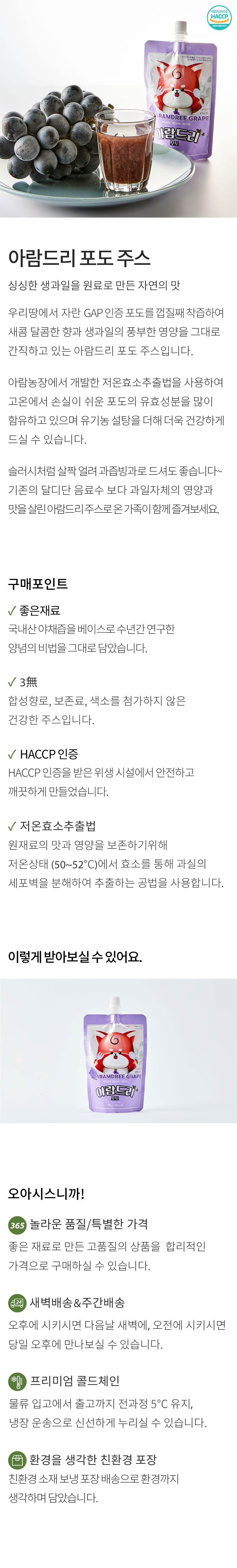 국내산 GAP 포도 추출물 (고형분 5.8% GAP포도) 91.1%, 유기농설탕 7.1%,포도 농축액(고형분 65%,국산)1.8%