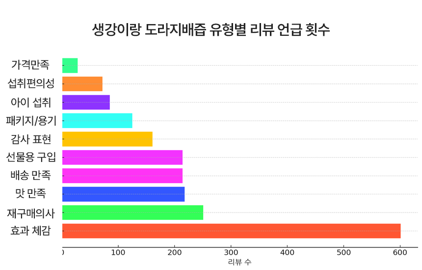 배(국내산) 74.9%, 도라지(국내산, 무농약) 23%, 생강(국내산) 2%, 수세미(국내산, 무농약) 0.1%