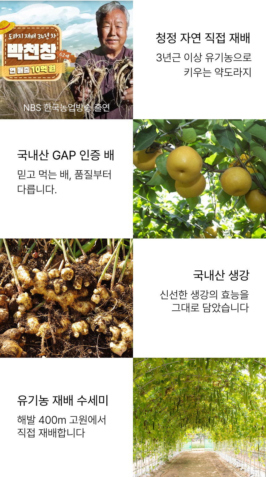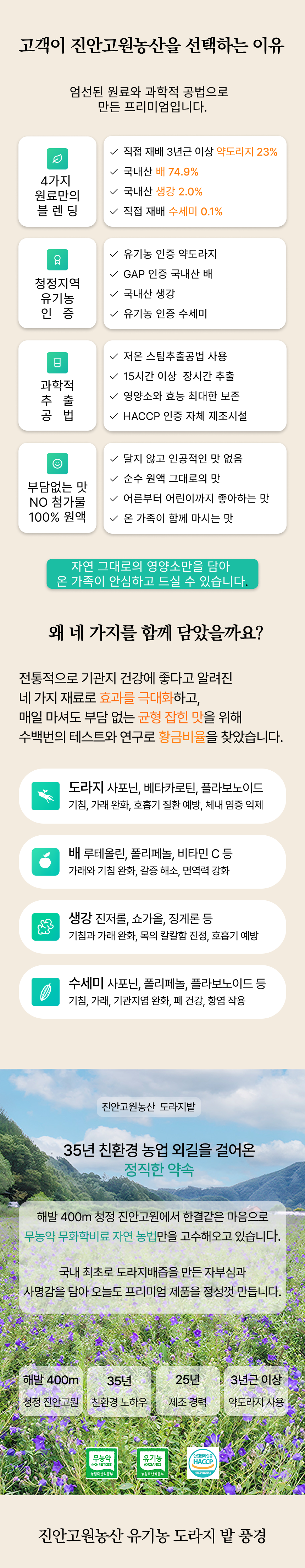 고원의 청정지역 진안 능길에서 무농약으로 직접 재배한 3년근 약도라지로 만든 친환경농산물과 HACCP 인증 제품