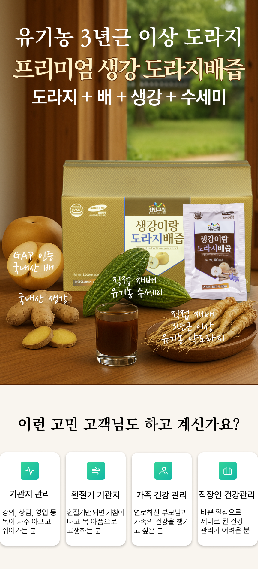 무농약 3년근 약도라지 생강 도라지배즙 (100ml*30포)