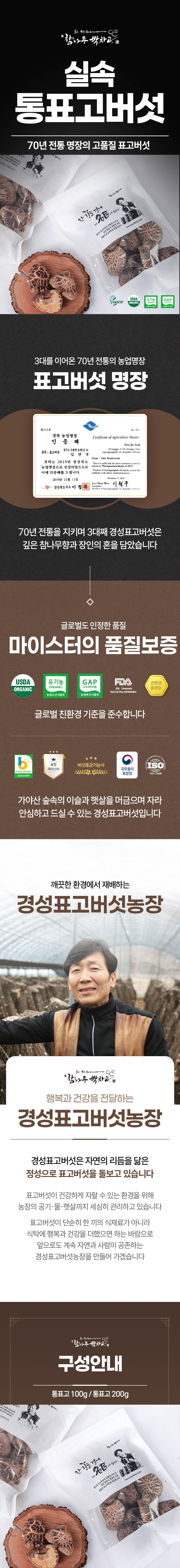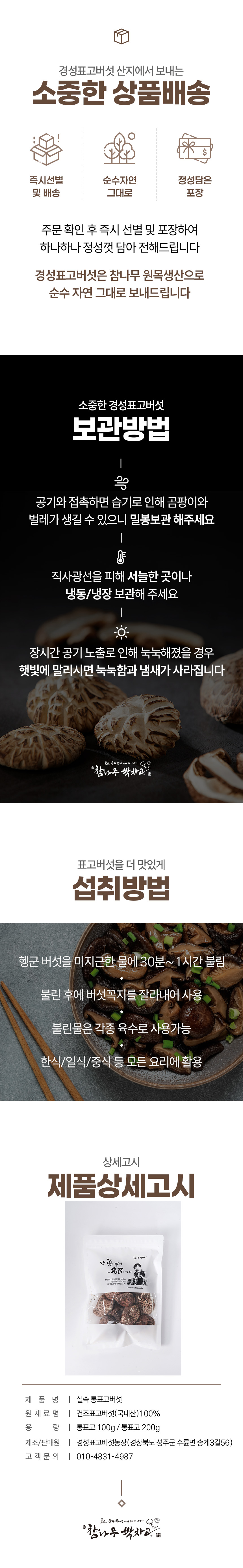 참나무원목재배 유기농 건표고버섯 통버섯 100g