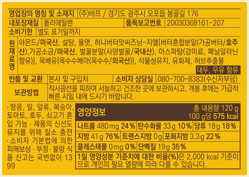 고소하고 신선한 아몬드가 달콤한 꿀과 향긋한 버터안으로 퐁당