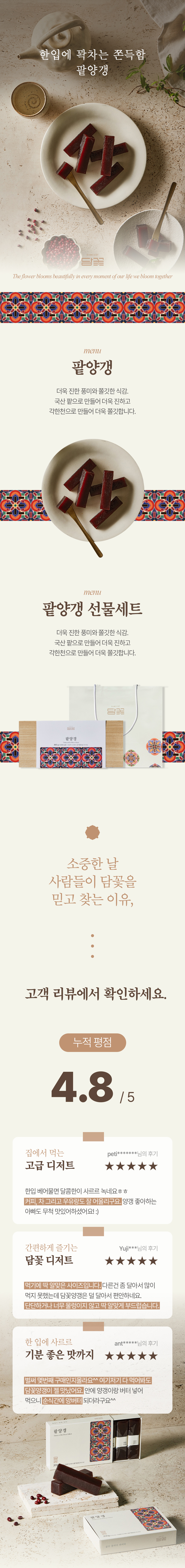 100%국산팥사용, 국내산 생한천 사용, 비교불가의 쫄깃쫄깃함, 전통요리명인 오숙경님의 양갱! 담꽃양갱