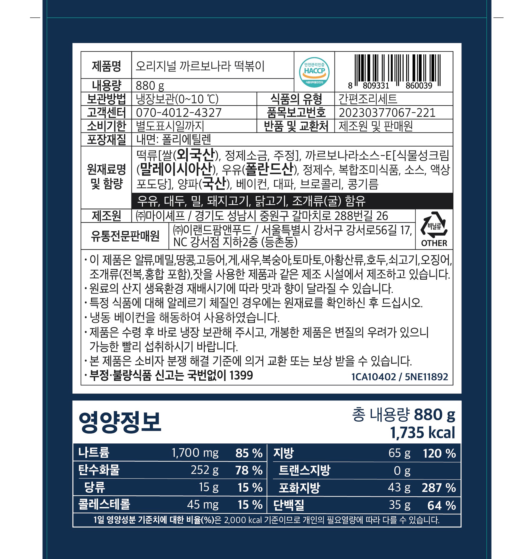 - 소비기한이 짧은 냉장 밀키트 상품입니다.
