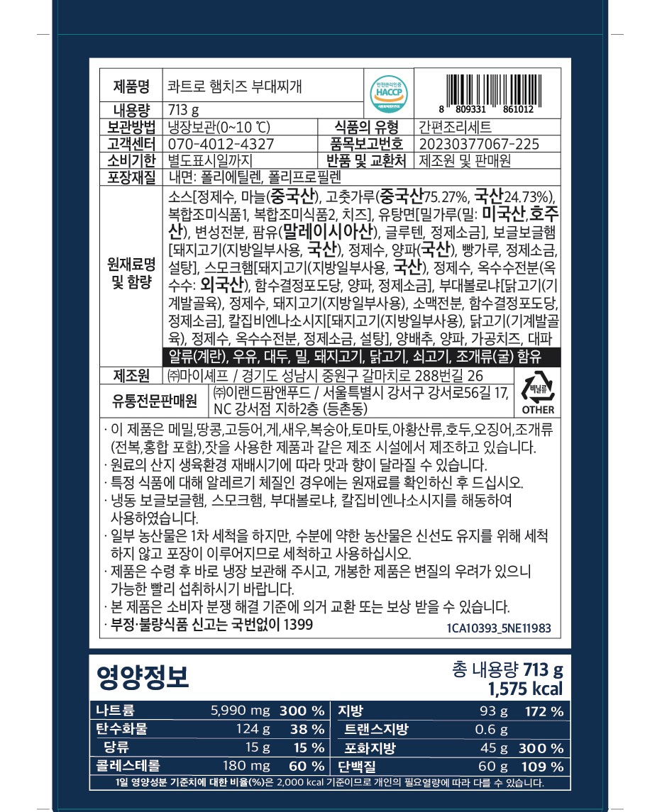- 애슐리 콰트로 햄치즈 부대찌개(713g)