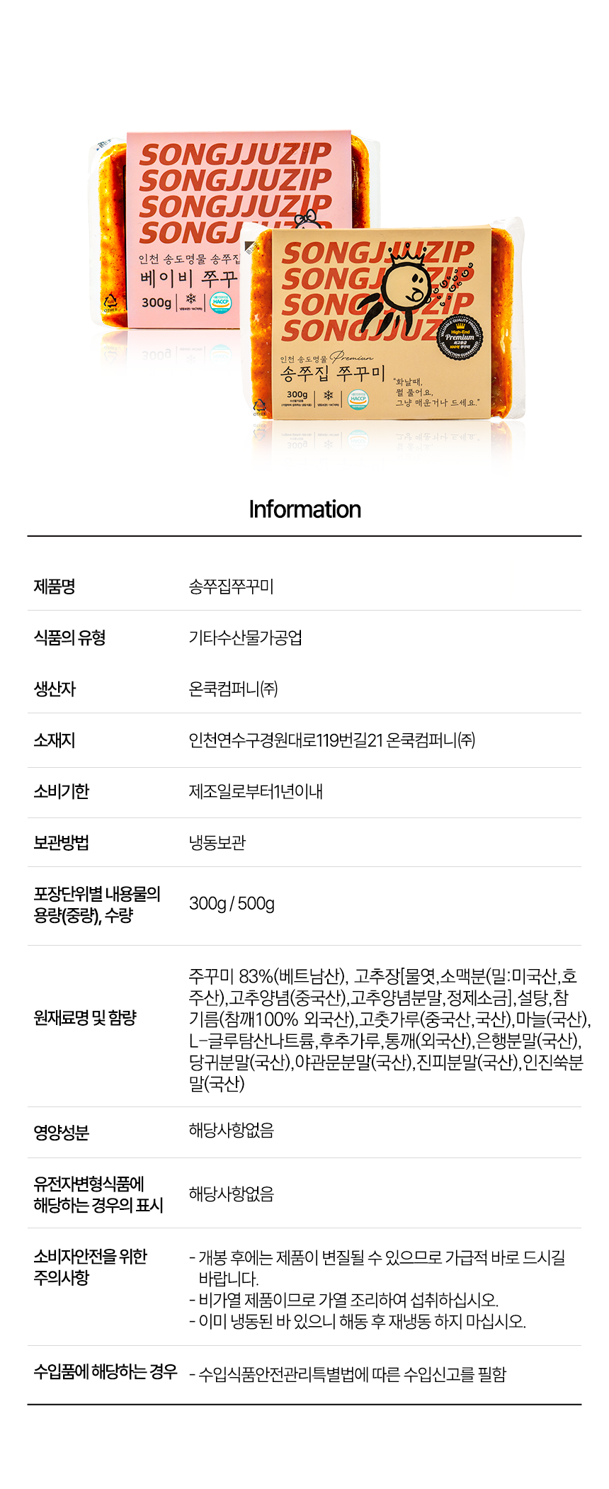 쭈꾸미계 하이엔드브랜드! 줄서서먹는 인천 송도의 명물 송쭈집의 프리미엄 쭈꾸미를 이제 집에서 간편하게 만나보세요!