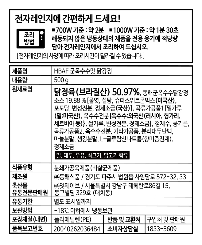 HBAF 허니버터 닭강정 , HBAF 군옥수수 닭강정 , HBAF 와사비마요 닭강정