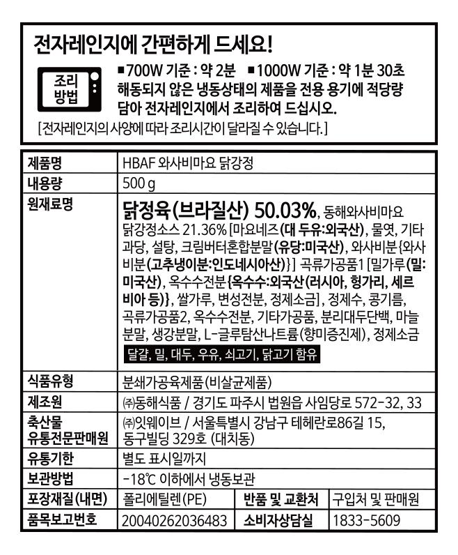 와사비마요 - 닭정육 50.03%, 동해와사비마요닭강정소스 21.36%