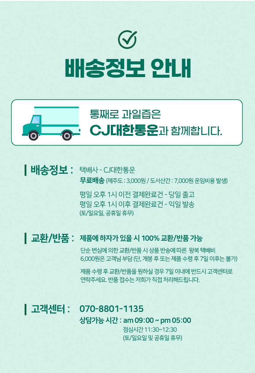직사광선을 피해 서늘한곳에 보관하시고 장기간보관시 냉장보관, 개봉후에는 냉장보관 하거나 빨리 드시기 바랍니다.
