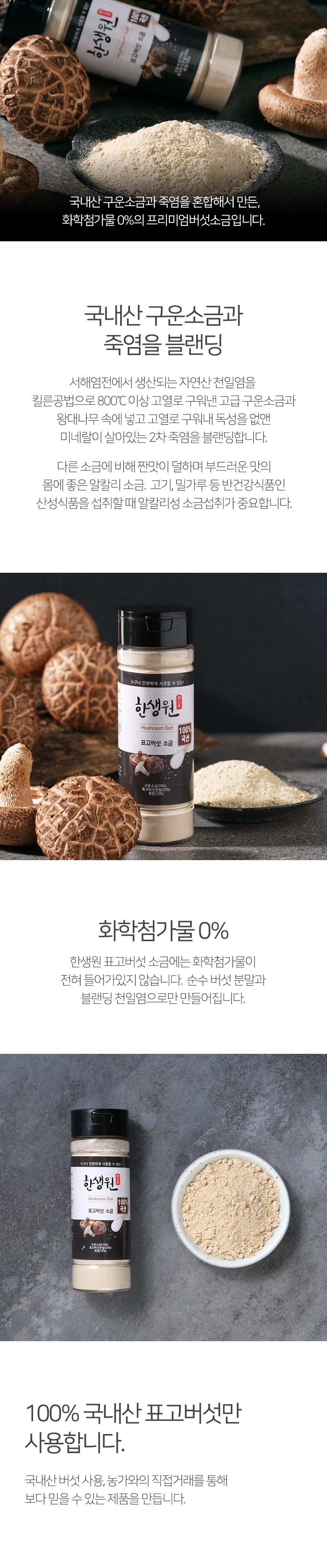 천연조미료 버섯소금 프리미엄소금 아기소금 저염소금 국내산소금