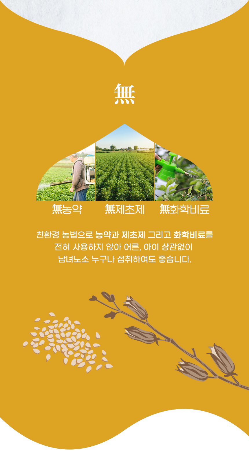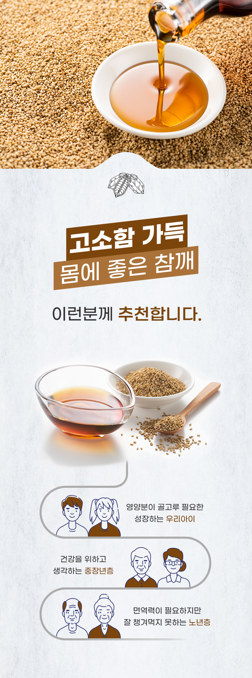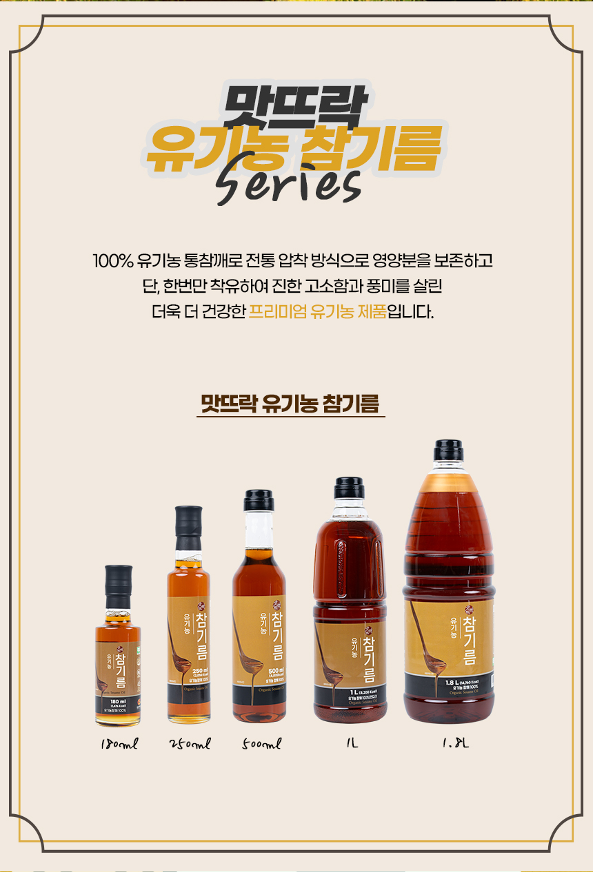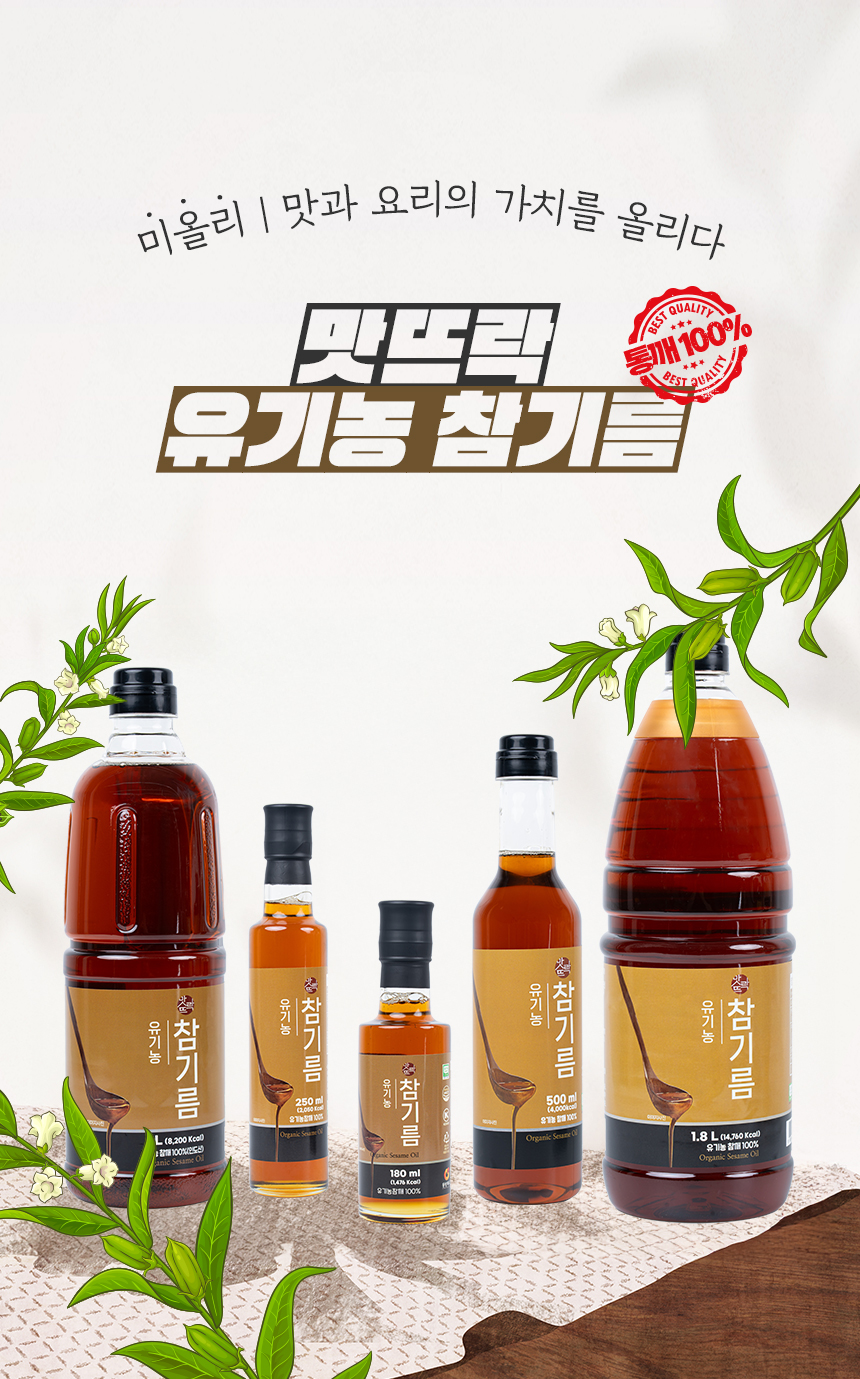 맛을 올리고 음식에 가치를 높이는 요리의 완성 유기농 참기름/볶음참깨