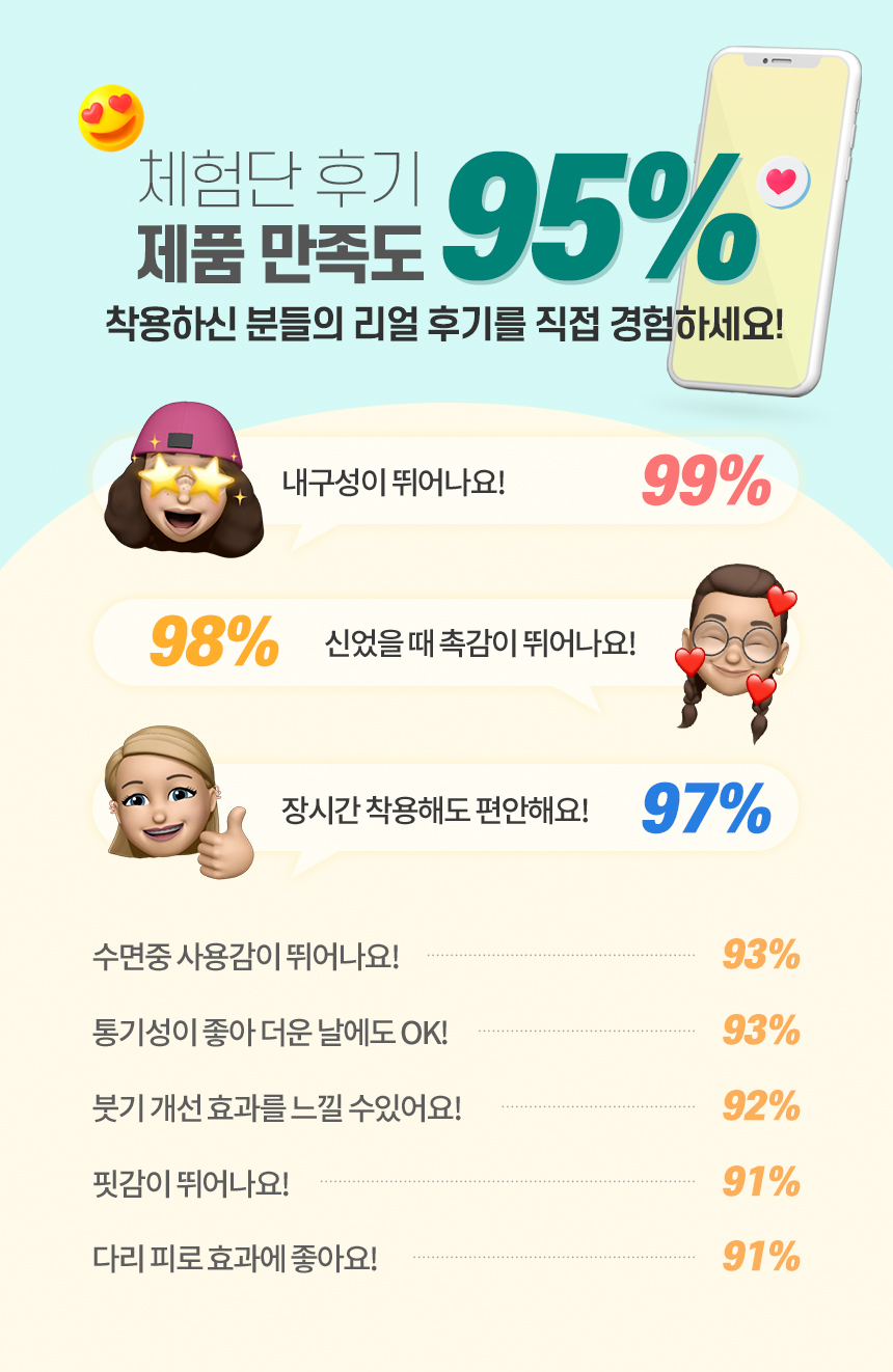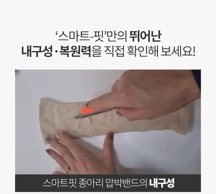 본 제품은 의료기기가 아닙니다. 용도 외에 사용을 금합니다. 사용감 및 압박감은 개인에 따라 차이가 있습니다. 피부 안전 테스트를 마친 제품이지만, 이상이 발생될 경우 반드시 전문의와 상담 후 착용하십시오. 상처 부위에 직접 접촉을 주의해 주세요. 무리한 힘은 자제해 주시고 날카로운 물건에 제품이 손상될 수 있으니 주의해 주세요. 본 제품은 소모성 제품으로, 사용이 반복됨에 따라 마모되고 신축성이 약해질 수 있으며, 이는 하자가 아닌 정상적인 제품 사용에 따른 현상입니다.