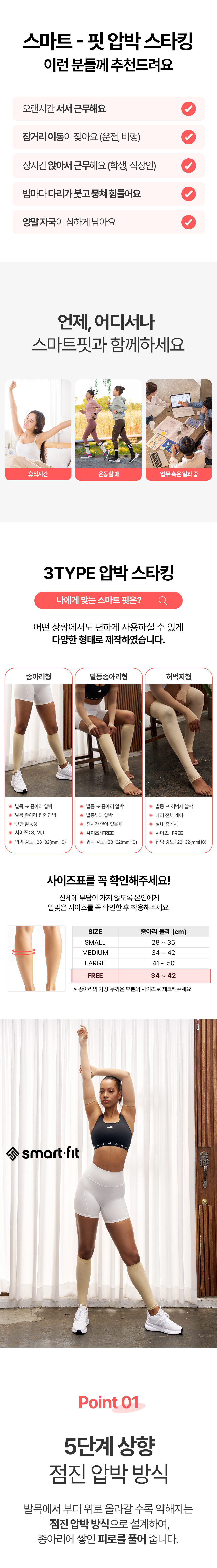 스마트핏 압박스타킹 종아리 압박밴드 수면 간호사 승무원 다리붓기빼기 베이지 블랙