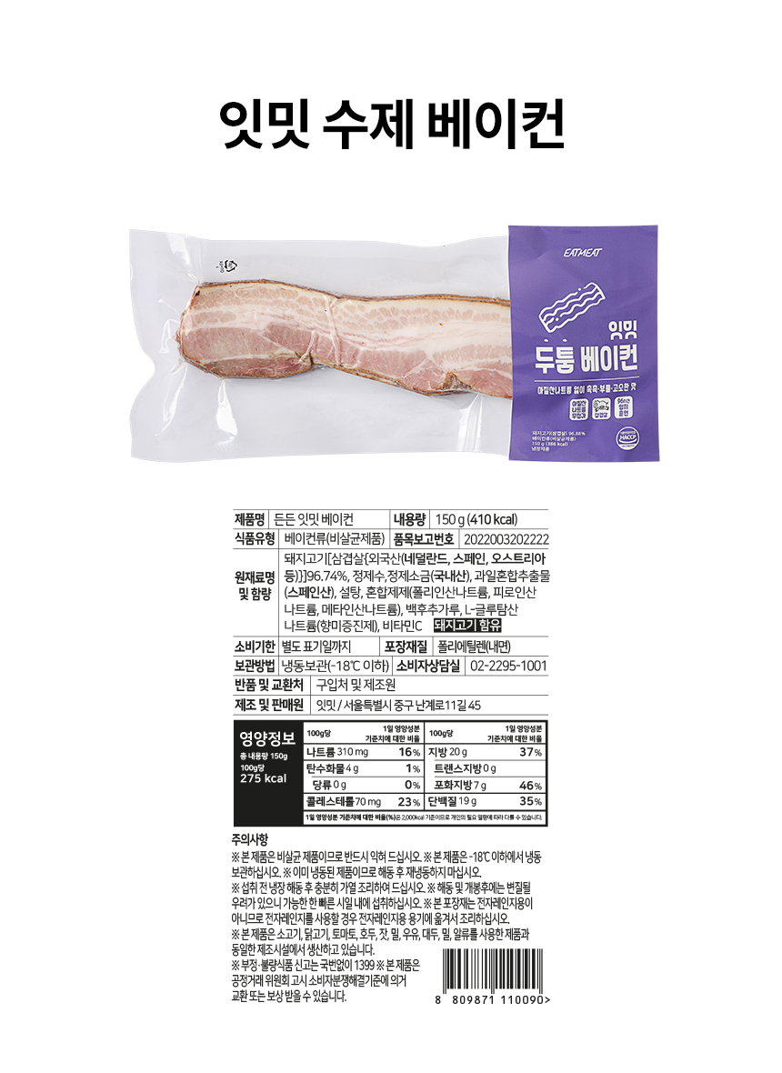 아질산나트륨 무첨가, 참나무 훈연, 삼겹살 베이컨