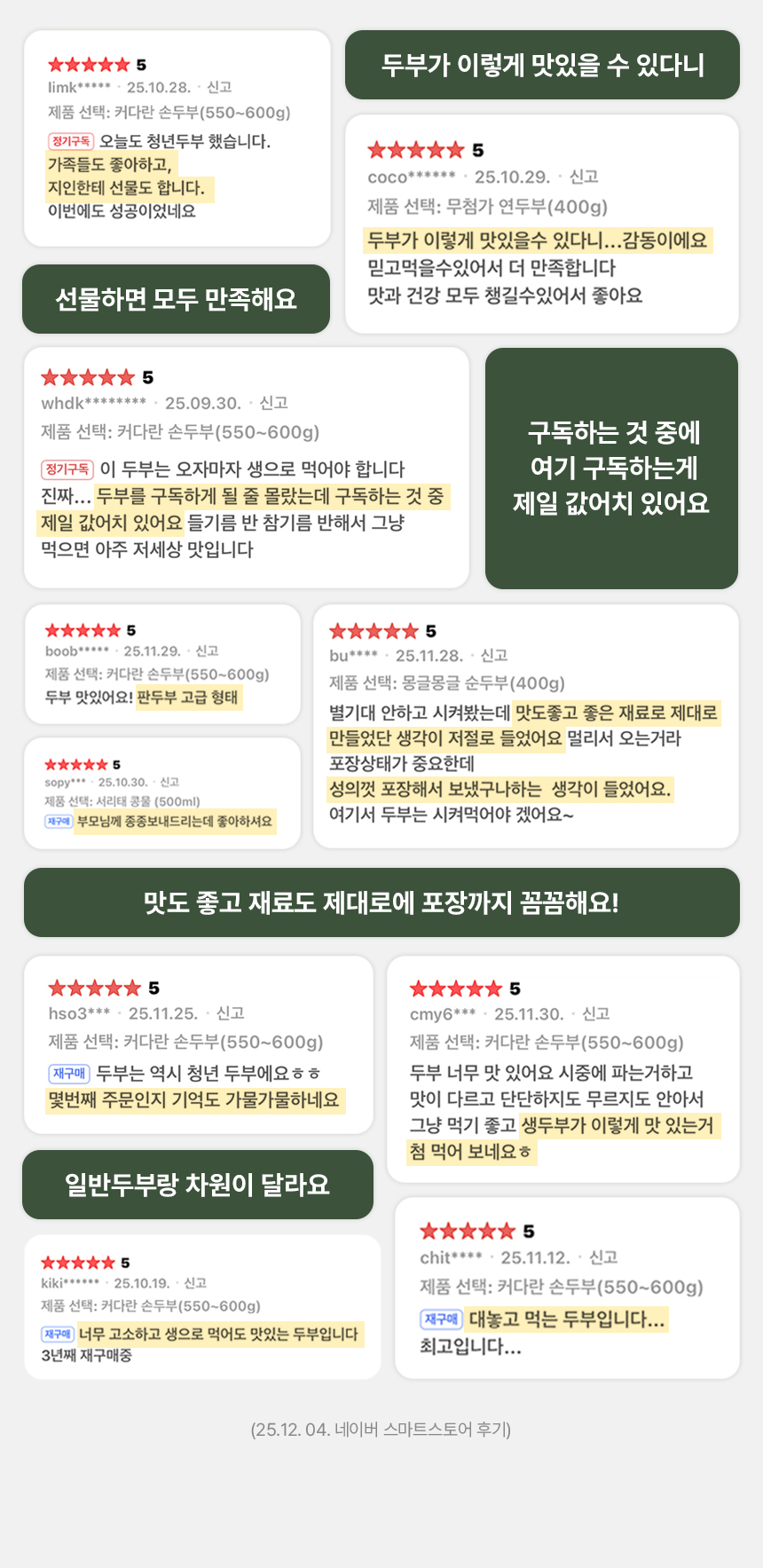 커다란손두부(550~600g)/1팩, 몽글몽글순두부(500g)/1팩, 무첨가연두부(400g)/1팩