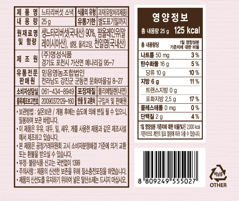 • 페이버립스 느타리버섯스낵 25g*4개입