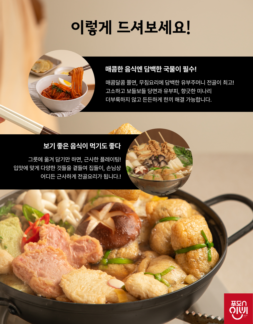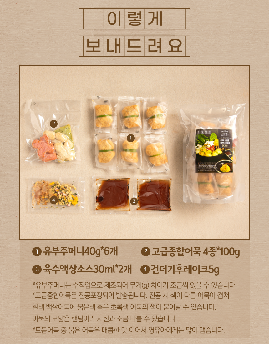 유부주머니35g 6개, 모듬어묵 100g, 액상소스60ml, 건더기후레이크5g