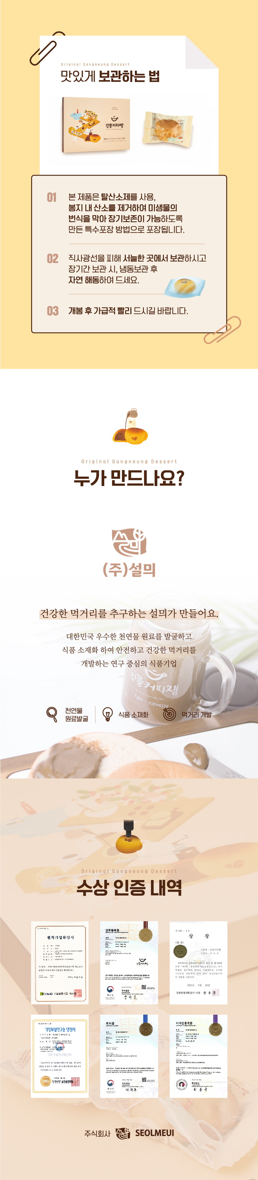 소재지:(주)설믜 강원도 강릉시 사임당로 641-6 해양바이오벤처 1공장 F107-1호/생산자:(주)과자의성 강원도 속초시 미시령로 3010