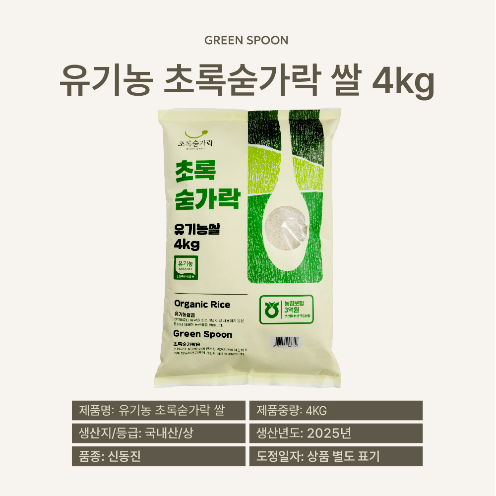 유기농 초록숟가락 쌀 10kg/1포, 4kg/1포, 2kg/1포, 1kg/10포, 1kg/5포, 2kg/5포, 4kg/2포
