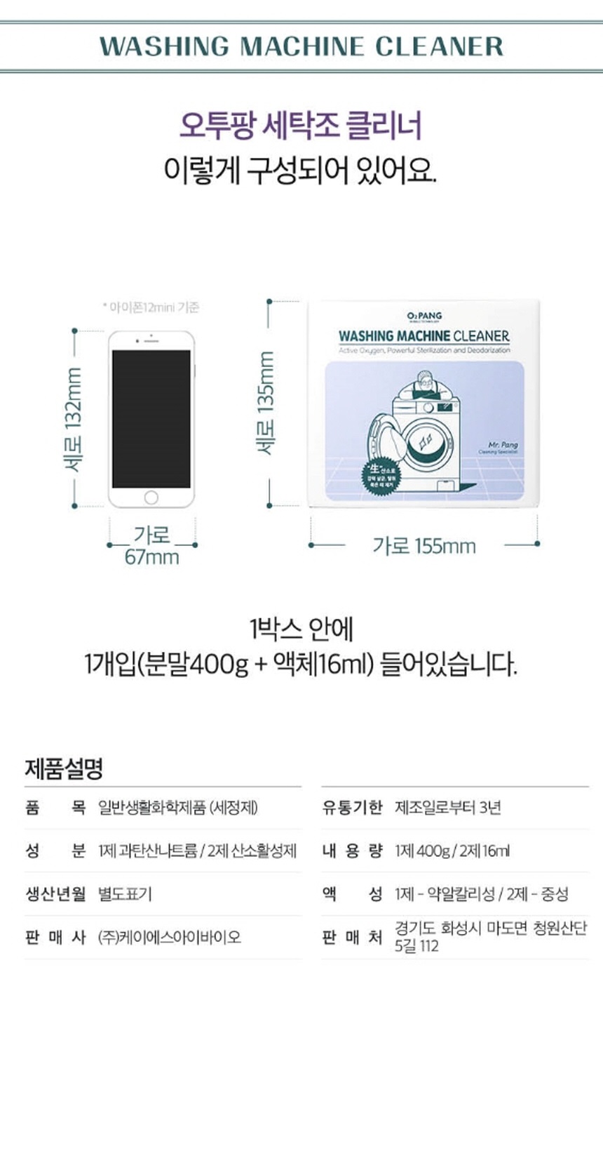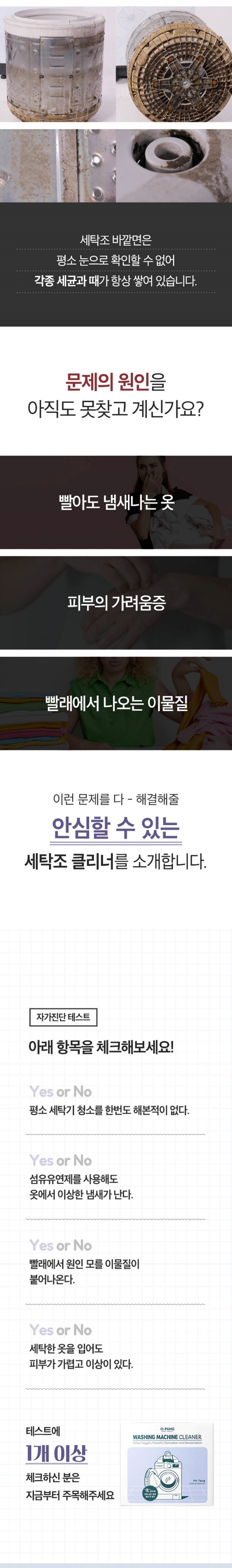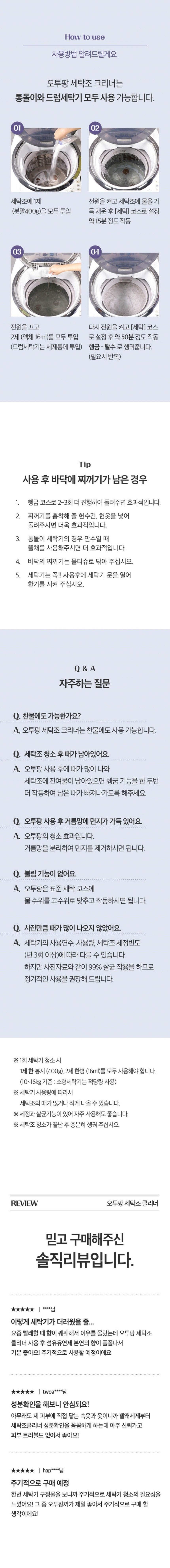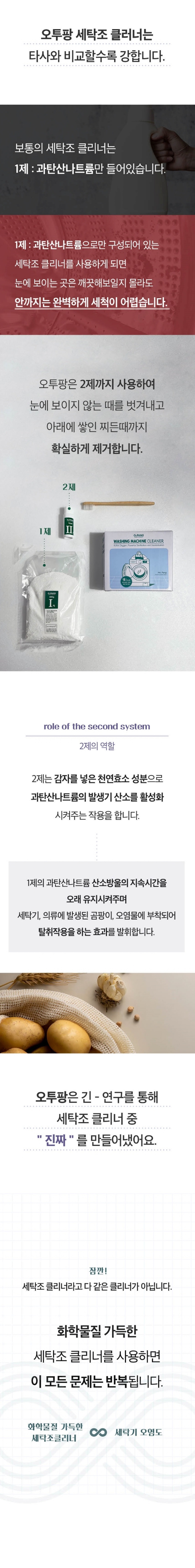 - 과탄산나트륨으로만 구성 되어 있는 세탁조 클리너와는 비교할 수 없는 감자 유래 효소(2제) 성분으로