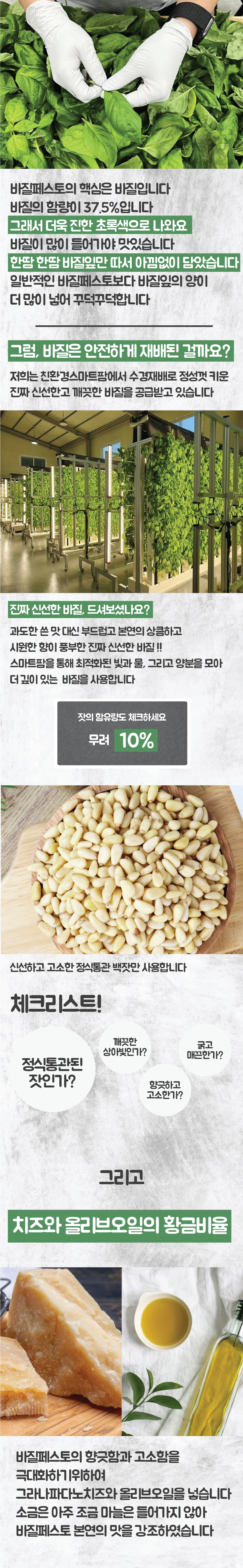 바질(38%),올리브오일(43%),잣(10%)소금(1%),그라노파다노(7%),