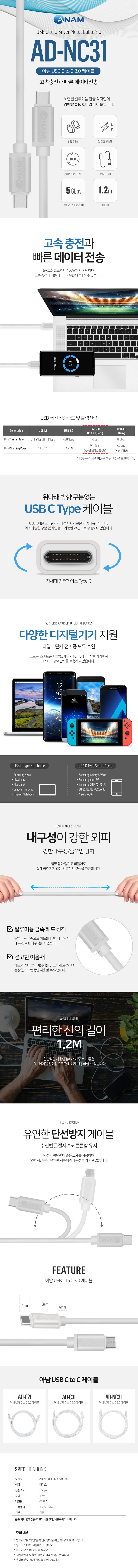 • 아남 USB C TO C 3.0 케이블 AD-NC31